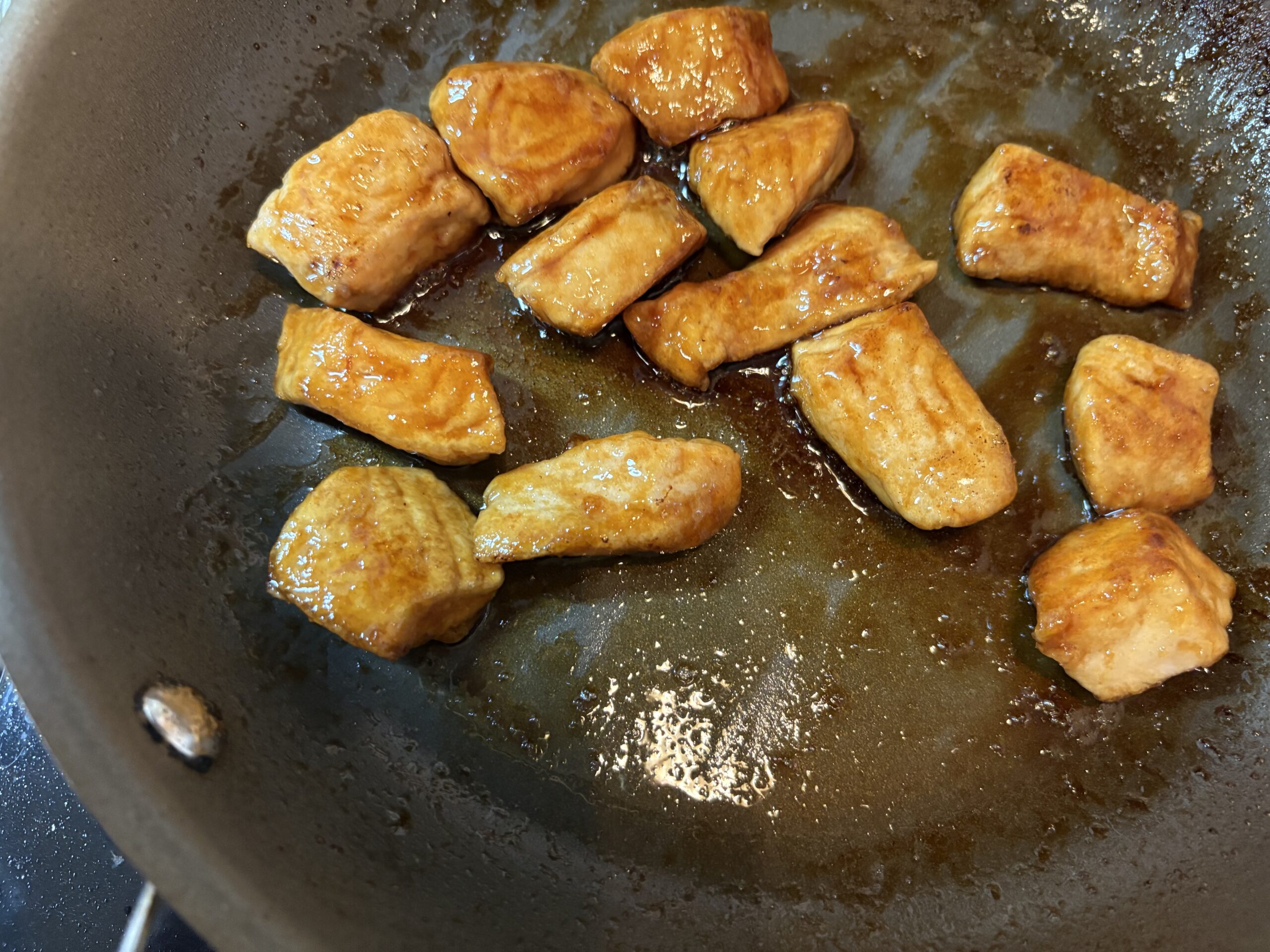 旨味の乗った秋鮭を一口サイズにカットして、甘辛い照り焼きにするレシピをご紹介します。鮭の身に片栗粉をまぶして焼きますから、仕上がりに照りが付いてタレもよく絡みます。冷めても美味しいですからお弁当のおかずなどにもいいですね。鮭以外でもタラなどの白身魚やイワシやサンマなどの青背の魚でも美味しく出来ますからお試し下さい。子供からお年寄りまで楽しめるユニバーサルレシピです。