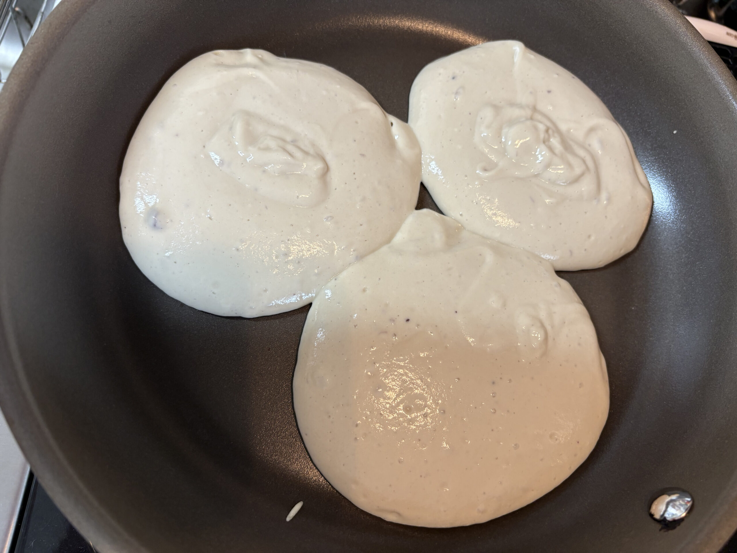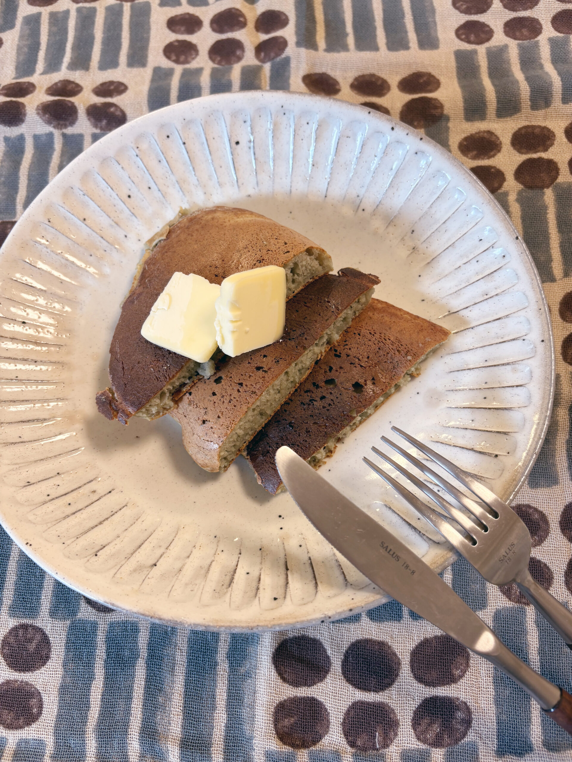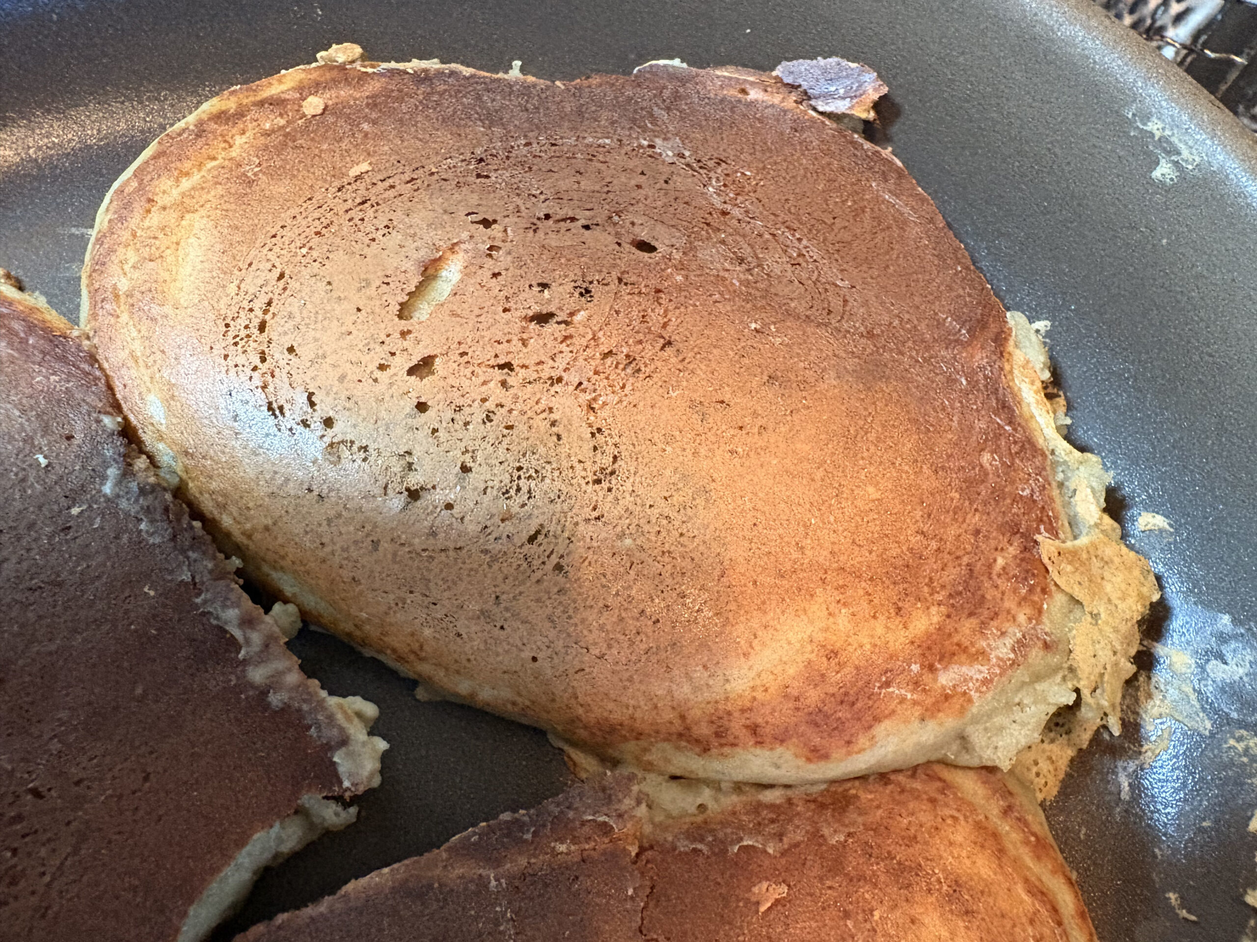 3 | 3〜5分程度焼いて、生地の表面に泡がぷくぷくと出てくる感じになったら様子を見て裏返します。 |