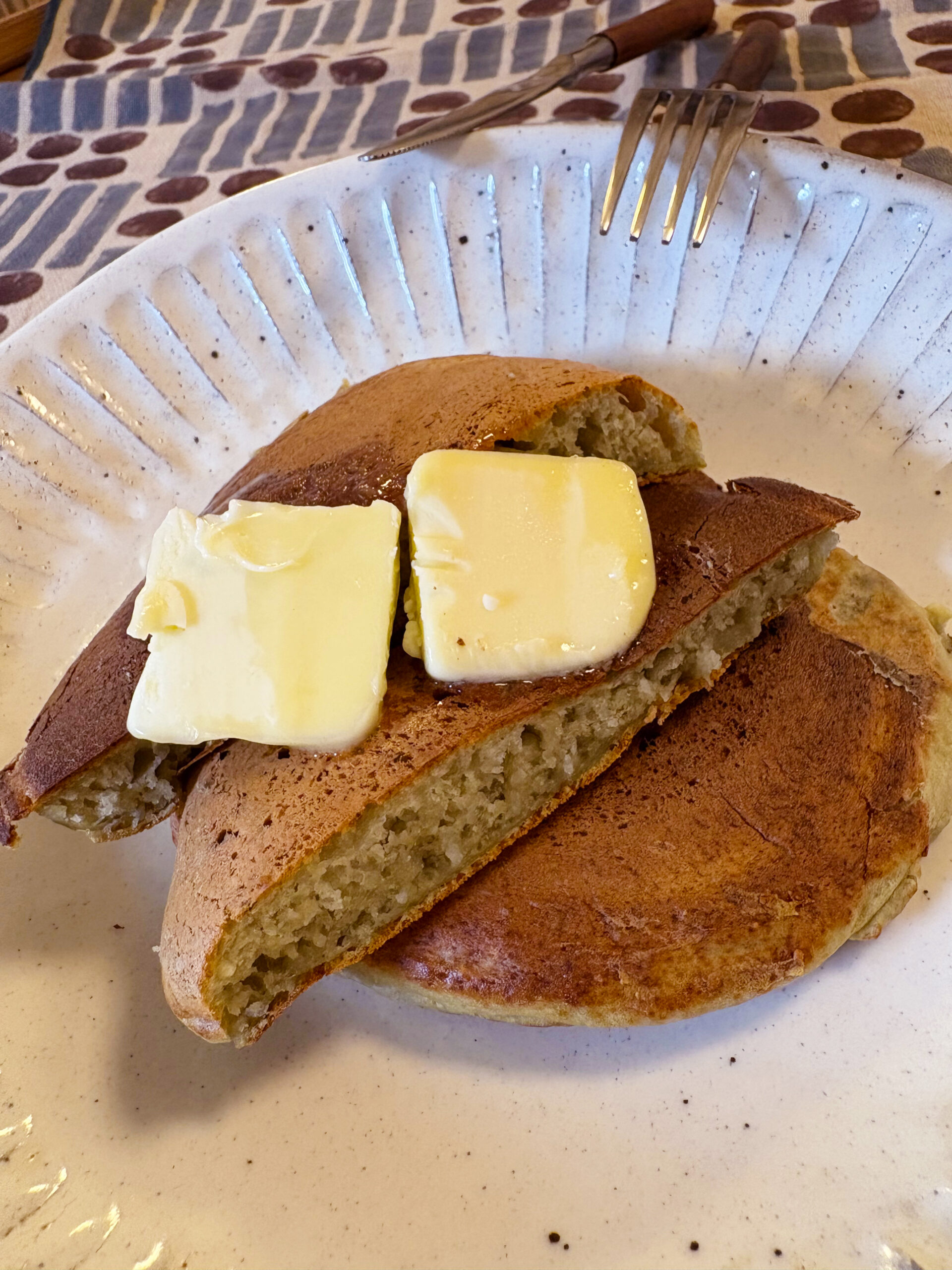 牛乳を使わずに砂糖入りのヨーグルトで作るパンケーキをご紹介します。今回はブルーベリー入りのフルーツヨーグルトを使いましたが、これはプレーンでも良いですしお好きなもので構いません。砂糖入りのヨーグルトを使う場合、生地に砂糖を入れる必要がありませんのでとても簡単に作れます。ただ、甘さは控えめに仕上がりますので甘いのがお好きな方は追加で入れて下さい。今回ベーキングパウダー(重曹)を使っていますが、これは無くても問題ありません。入れればフンワリ仕上がりますし無ければ膨らまない代わりにしっとり仕上がります。お年寄りにはしっとり仕上げた方が食べやすいと思います。