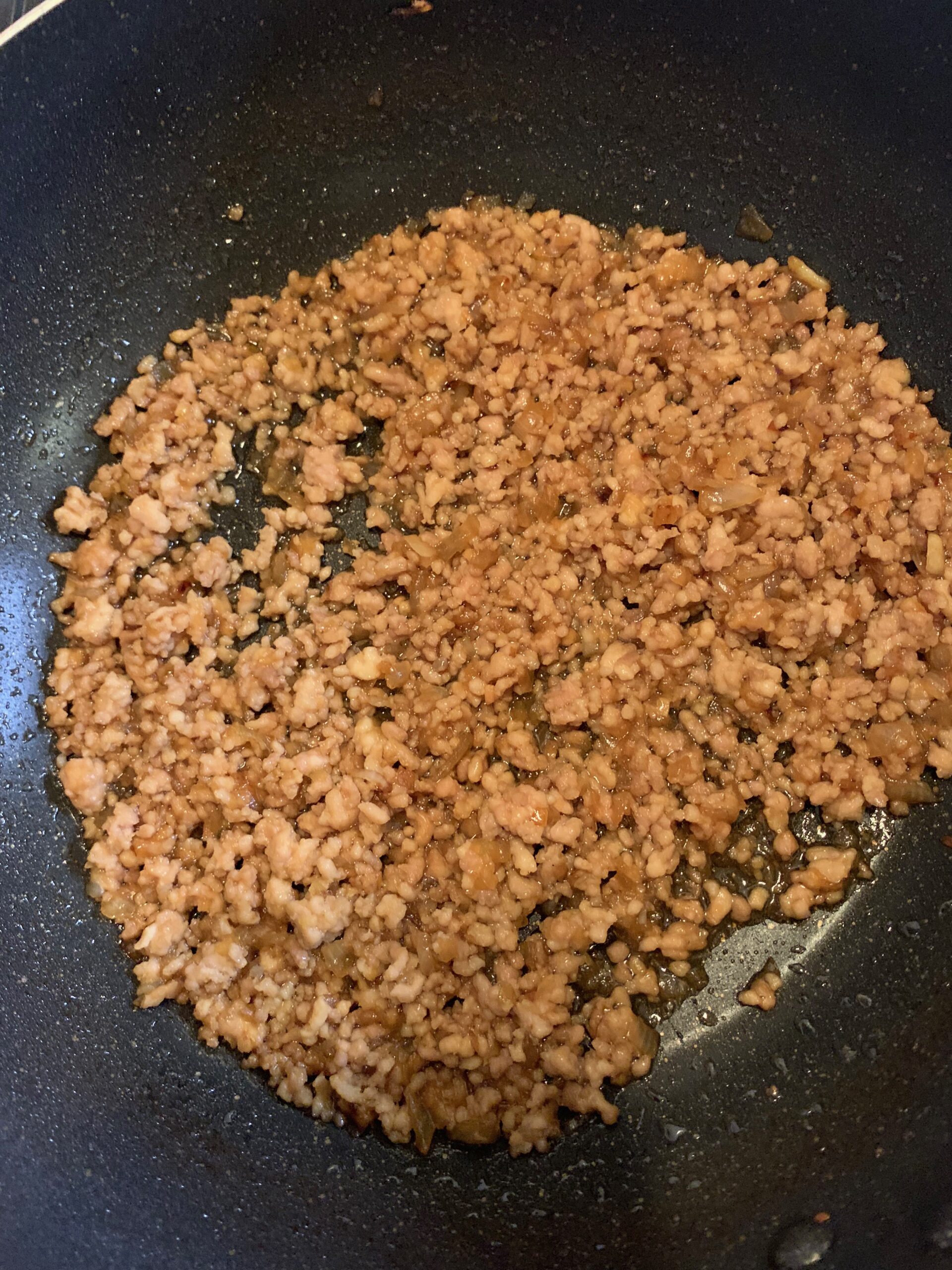 | 3 | 玉葱はみじん切りにしてミンチと一緒に炒めていきますが、先に玉葱から炒めたほうがミンチがダマにならずほぐれやすくなります。 |