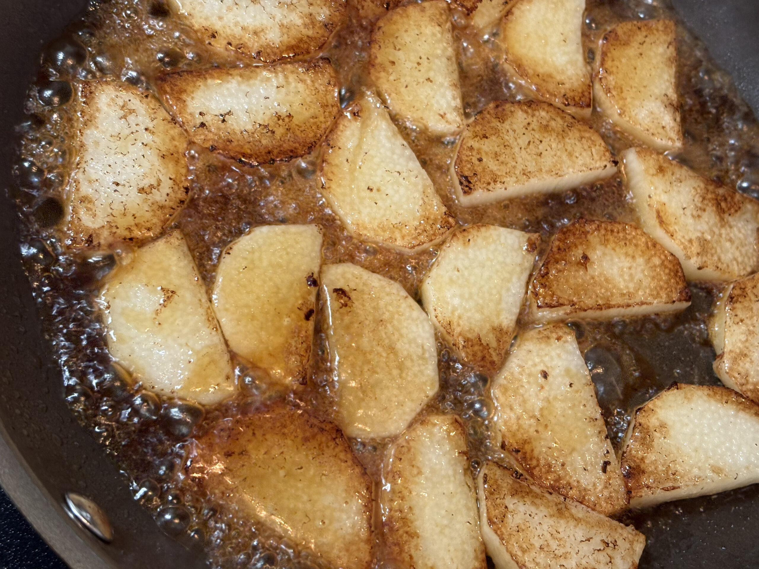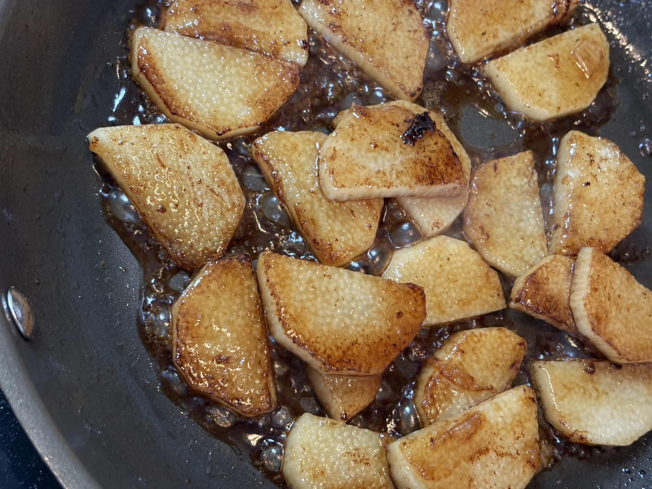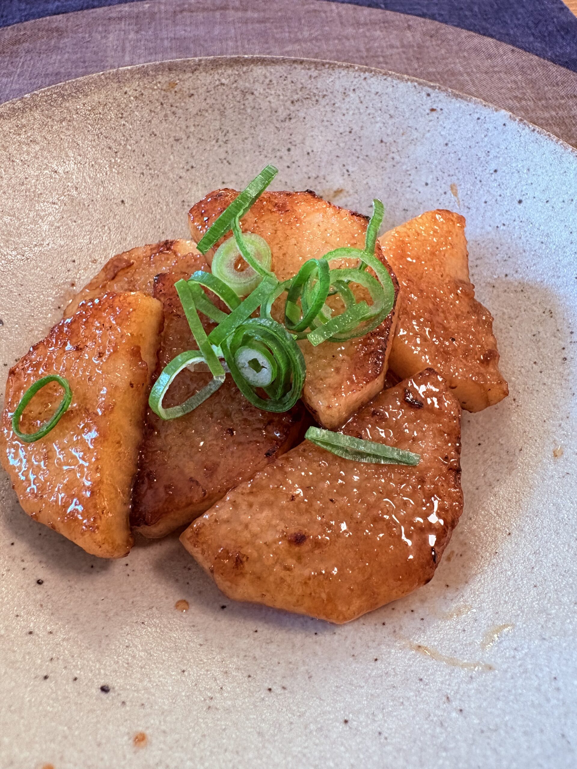 | 4 | 返した面にも同じ様に焼き色が付いてきたら2の合わせ調味料を一気に流し入れ、全体を大きく揺らしながら全体に軽くトロミが付いて照りが出てきたら完成です。 |