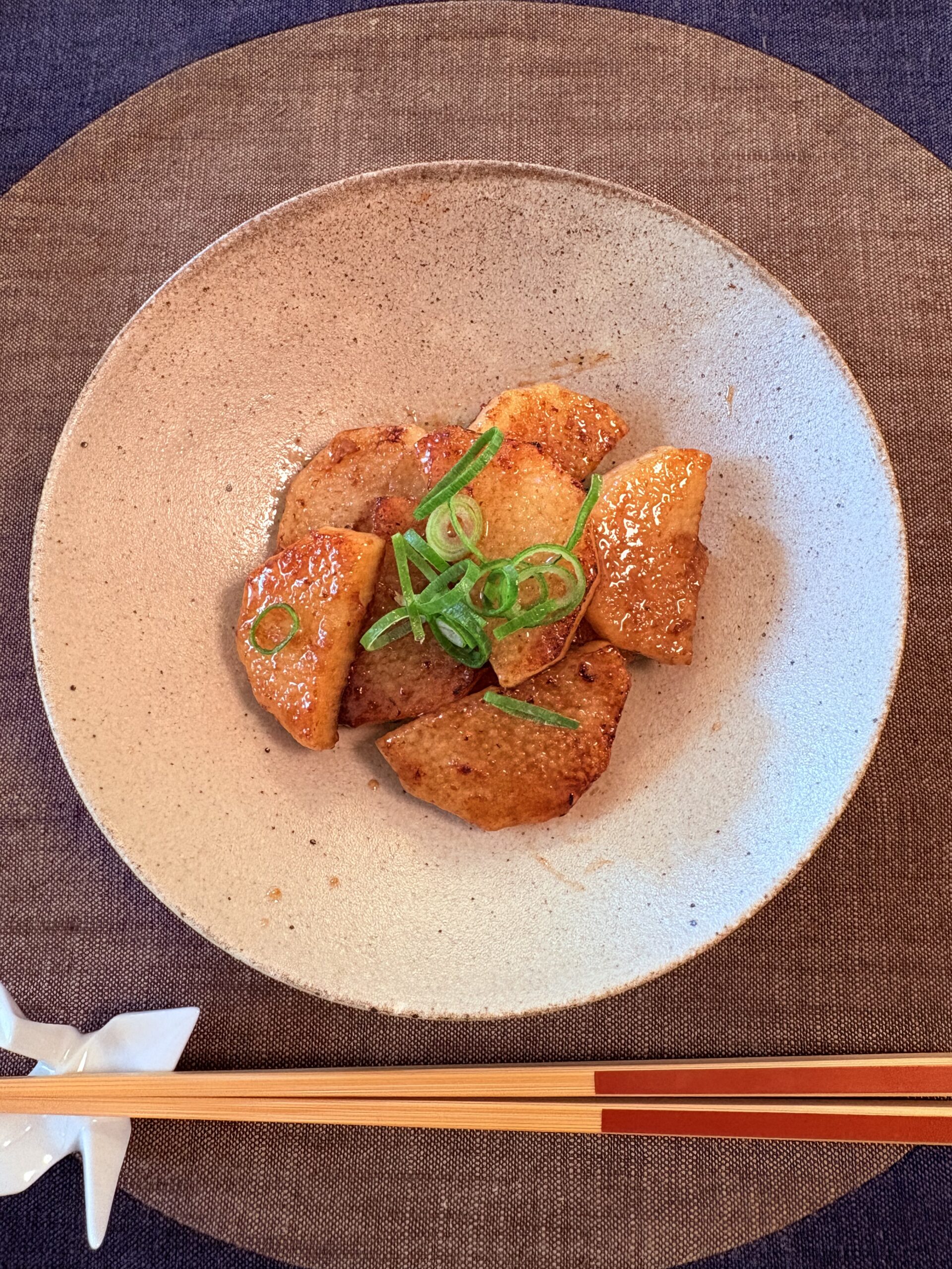 長芋を甘辛く照り焼きにするレシピをご紹介します。長芋はしっかりと火を通せばホクホクした食感に仕上がりますし、軽めに焼けばサクサク感が楽しめます。生でも食べられる野菜ですから火の通し加減はお好みで調整して下さい。軽めに焼いた場合でも難なく噛む事が出来ますから、歯の悪いお年寄りにも提供しやすいと思います。味つけは甘辛い定番の味つけですが、砂糖はお好みで入れなくても良いですし分量は調整して下さい。手早く出来るボリューム感のあるおかずです。