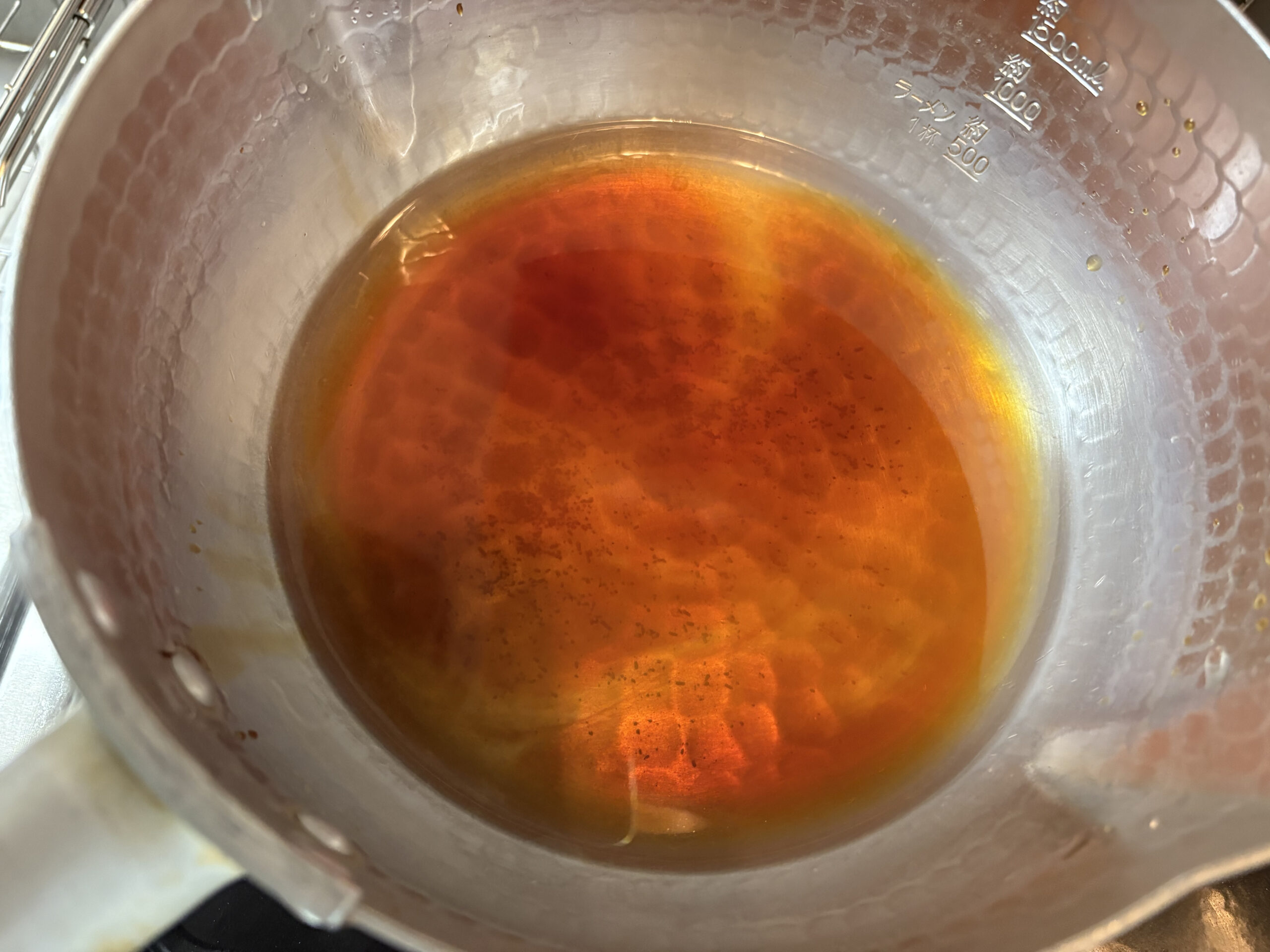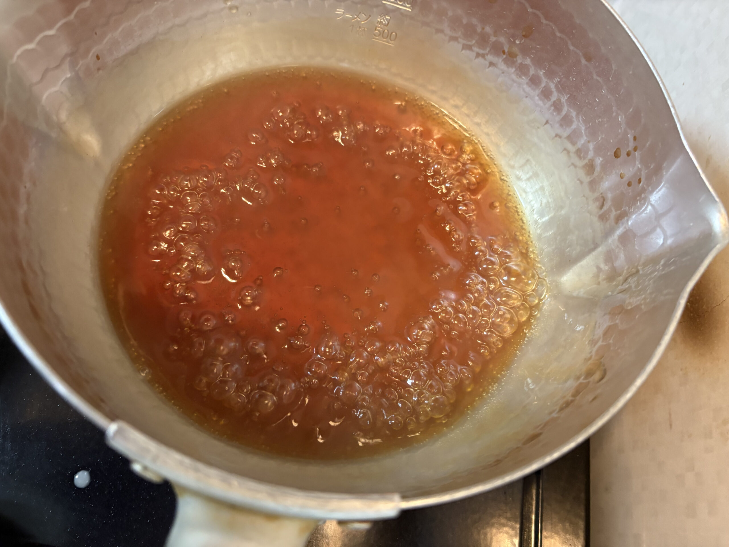 3 | 厚揚げを焼きながら餡を作っていきます。鍋に出汁と調味料を入れ、火にかけて沸かします。沸いたら水溶き片栗粉でトロミ付けしたら餡の完成です。 |